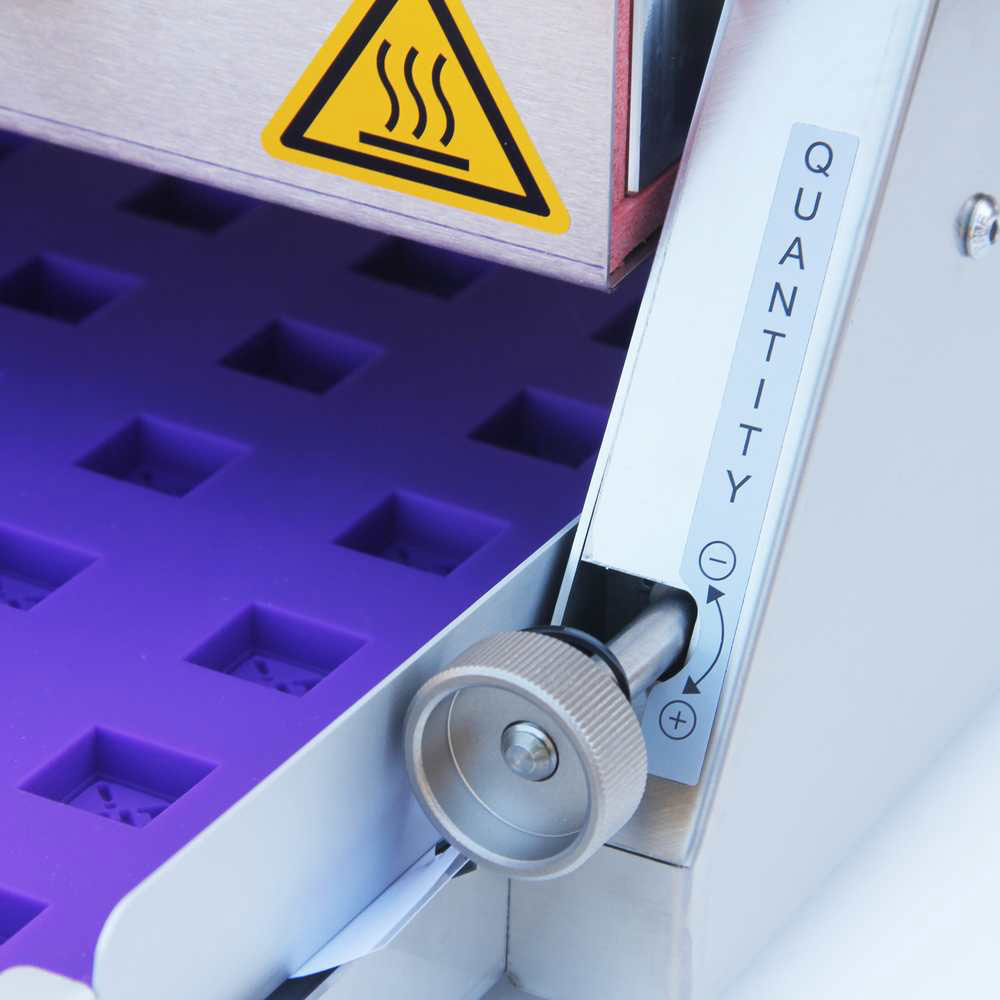 The XL Universal Candy Depositor comes with the extra large 12L hopper with heated panelsĀ for chocolate, gummies, taffy, caramel, hard candy and more, is designed to work with with most standard molds on the market, including silicone and polycarbonate up to 11.5 inches wide, it delivers accurately metered fillings with great flexibility. Stainless steel construction with adjustable depositing nozzles that can be easily positioned to each mold layout.
