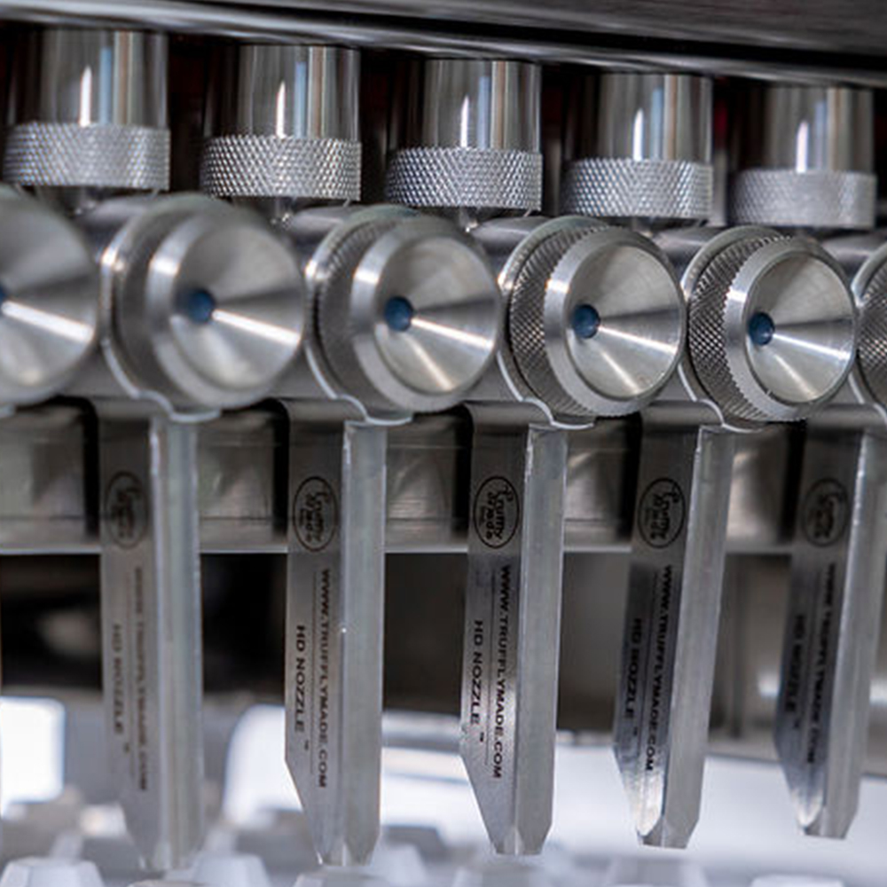 The XL Universal Candy Depositor for chocolate, gummies, taffy, caramel, hard candy and more, is designed to work with with most standard molds on the market, including silicone and polycarbonate up to 11.5 inches wide, it delivers accurately metered fillings with great flexibility. Stainless steel construction with adjustable depositing nozzles that can be easily positioned to each mold layout.