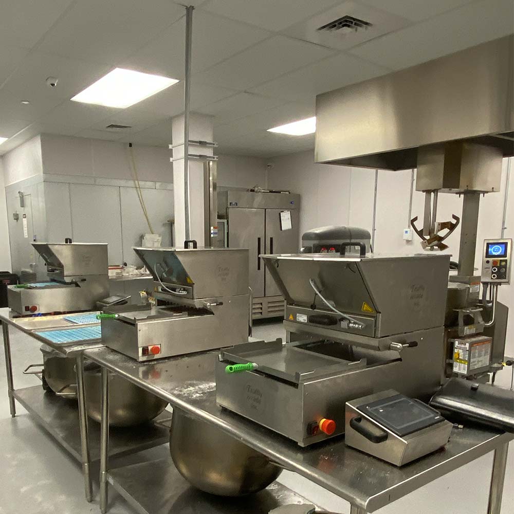 - Paired with our kitchen design services, which seamlessly integrate Truffly Made’s state-of-the-art depositing machines, you’ll have everything you need to streamline production and elevate your gummy-making process. From layout optimization to equipment selection, our team will work hand in hand with you to create a tailored solution that maximizes efficiency and productivity.