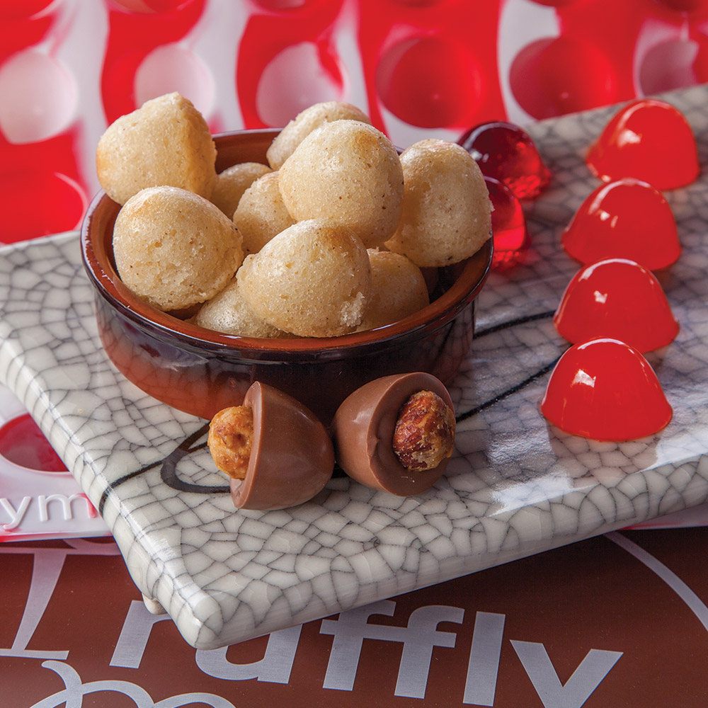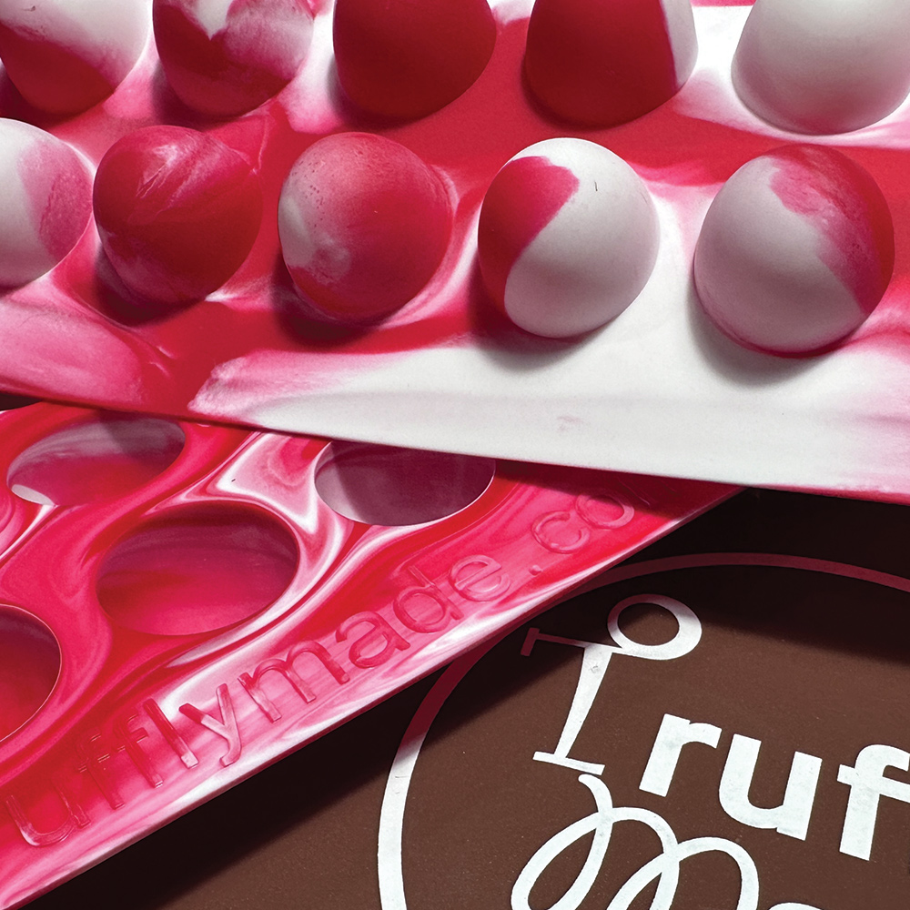 Truffly Made silicone molds gives a precisely formed shaped candy. Can be used with chocolate, ganache, caramel, gummy, praline and hard candy. Eliminating the need for hand-manufacture and creates uniform candies every time.
