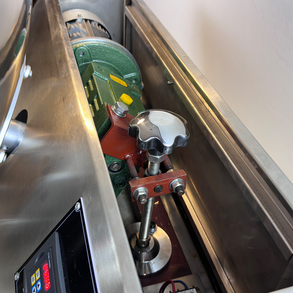 The Truffly Made Panner Candy Coating Machine is a heavy duty table-top tumbler for coating gummies and other type of candies.