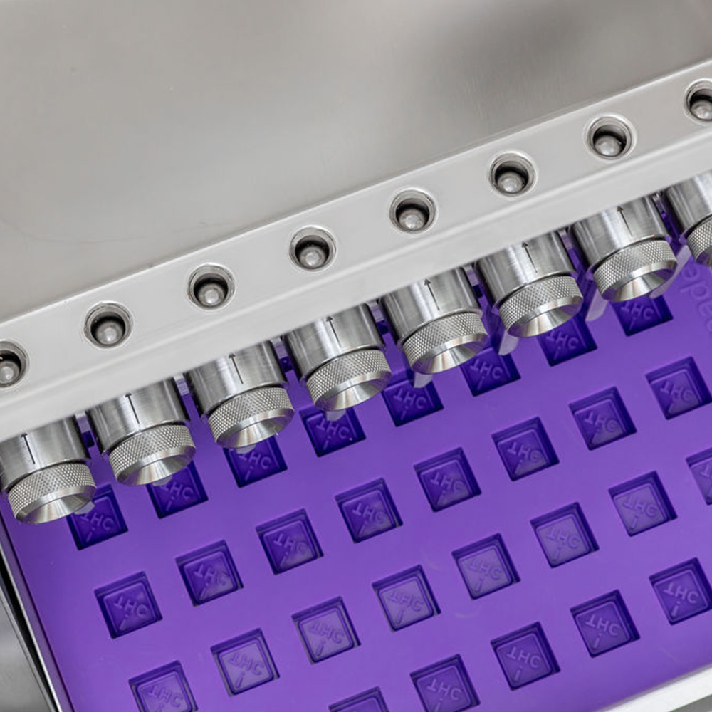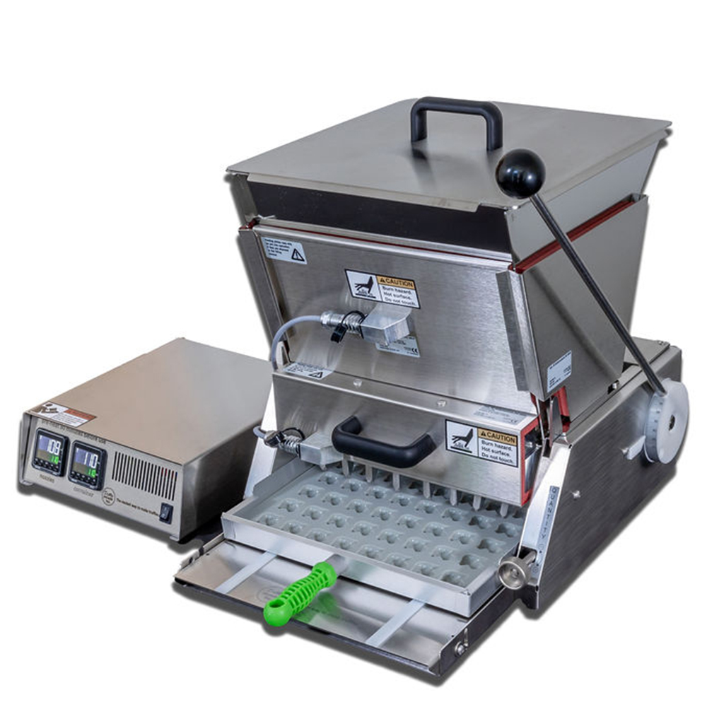 The Universal Candy Depositor for chocolate, gummies, taffy, caramel, hard candy and more, is designed to work with with most standard molds on the market, including silicone and polycarbonate up to 11.5 inches wide, it delivers accurately metered fillings with great flexibility. Stainless steel construction with adjustable depositing nozzles that can be easily positioned to each mold layout.